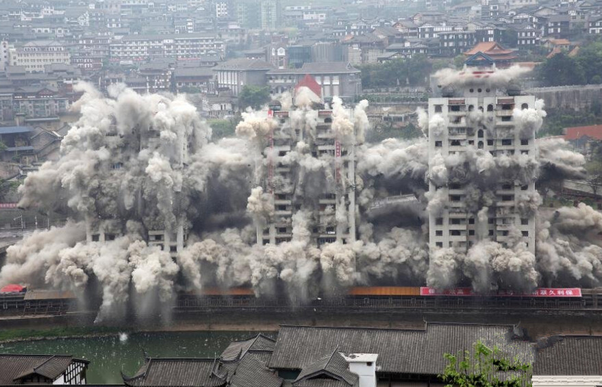 3月20日上午9时50分,贵州省仁怀市成功爆破拆除了位于茅台镇河滨路的3幢18层建筑。中新社记者 仇国钰 摄