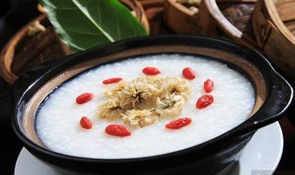 枸杞有养肝、滋肾和润肺的功能,取枸杞10克,菊花10克,云苓20克,大米适量煮粥,能够起到益肝肾明目、增强免疫力。抗衰老,降血糖、血压等功效。