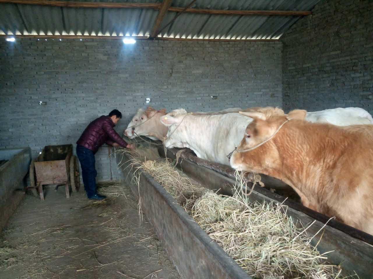曹保记早上为黄牛加稻草饲料(图片为养牛场一角)