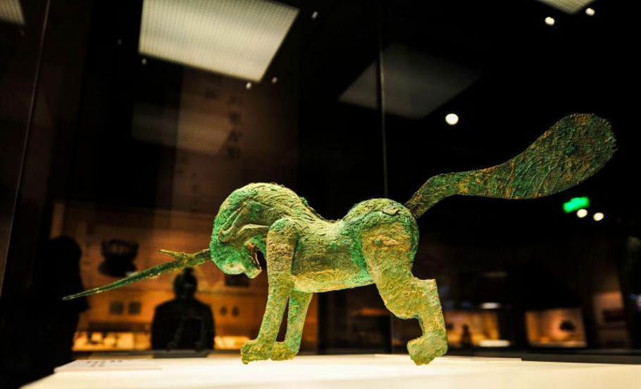 4月6日,辽宁沈阳展出的汉代青铜独角兽,这件独角兽出土于1956年的甘肃酒泉地区。“茶马古道——西部八省区文物联展”集合八省区12家博物馆共计342件(组)文物,向观众展示“茶马古道”这条世界上海拔最高的交通“生命线”,让观众领略茶马古道沿线的风土人情。 于海洋 摄