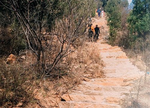 周六一大早我们就出发了,开车到了这附近也只能选择徒步。山上的路,并不好走,台阶高高低低,宽宽窄窄的。爬起来很费劲,但是好在山并不高。附近人烟稀少。