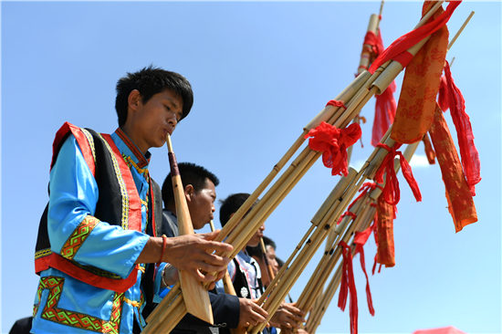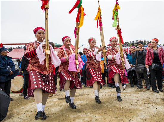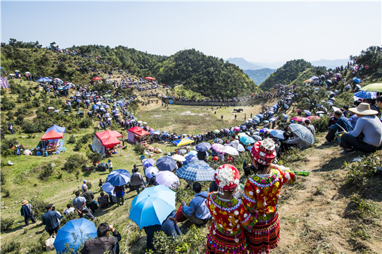 初夏的贵州黄平晴空万里,气候宜人。贵州黄平县新州镇周边乡镇及临近村寨数万名少数民族同胞陆续来到位于黄飘村的白保坡,欢度一年一度的三月芦笙节。