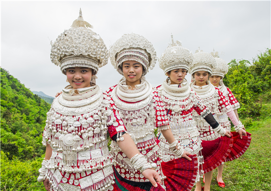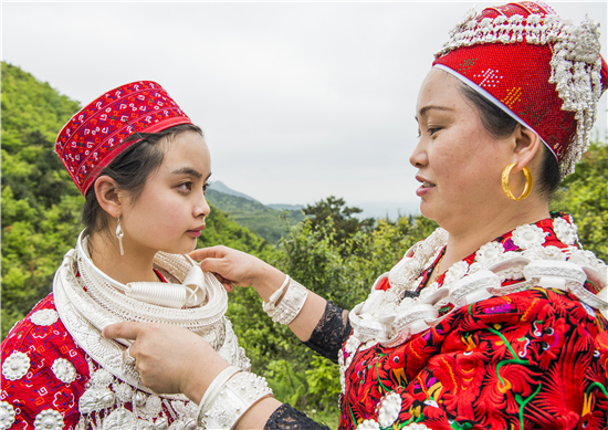 △芦笙会上身着盛装的苗族女孩。