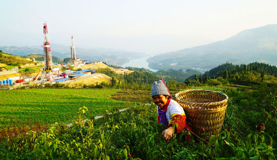 涪陵页岩气田开发农耕与生产两不误(中国石化供图)