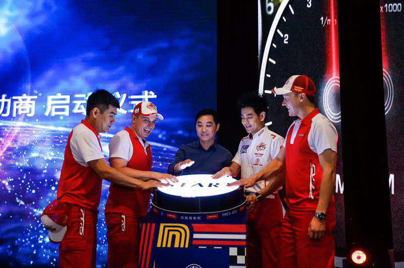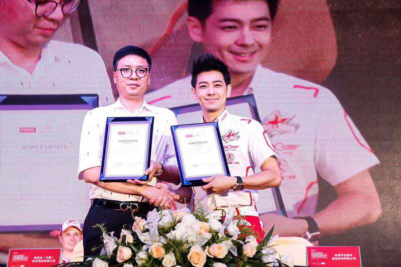 7月1日,林志颖携“平坐车队”成员在浙江绍兴鉴湖大酒店举行赞助签约仪式。总统慢跑鞋品牌作为“平坐车队”的特约赞助商,为车队出战极速先锋系列赛提供定制的比赛专用鞋。