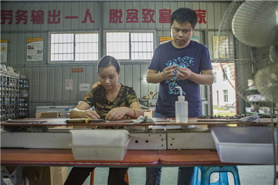 外出打工时两人相识、相恋,多年后,夫妻俩从深圳返回陕西勉县,还建起电子组装车间,安置近百名留守妇女务工,其中还有22名贫困人口,工人每人月均收入可达1500元。