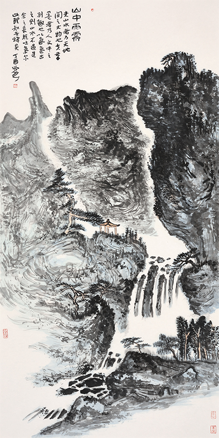 梅墨生有幸从《集王圣教序》中学习到了东晋书圣王羲之的书法,从那以后一直学习的宋元之前的字体,直到遇到恩师可染先生。在先生的教导下,又重学了汉碑与魏碑,并且将“真、草、隶、篆”都临习了一遍。在绘画方面梅墨生很喜欢画写意,也更偏向于写意山水,最初他用陆俨少的一本《山水画刍议》入门,将整本书的画册仔细的临习,才使得他有了今天的成绩!
