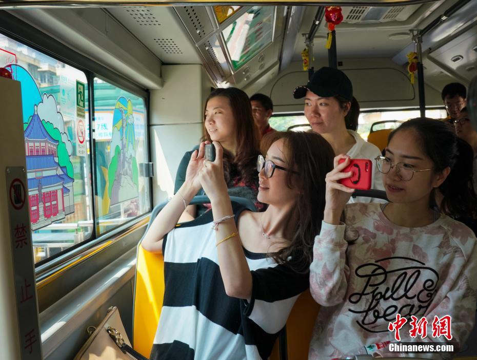 4月10日,广州首批逾450辆全新外观涂装的纯电动公交车投入运营,广州塔、纪念堂、五羊雕像等“广州元素”的窗花,把广州岭南文化的底蕴和现代化大都市的时尚气质融合一起,为羊城街头再添流动的风景线。中新社记者 黄明亮 摄