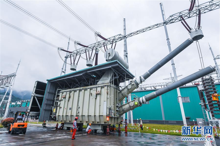5月8日,工作人员在金华换流站内对换流变压器进行检修作业。