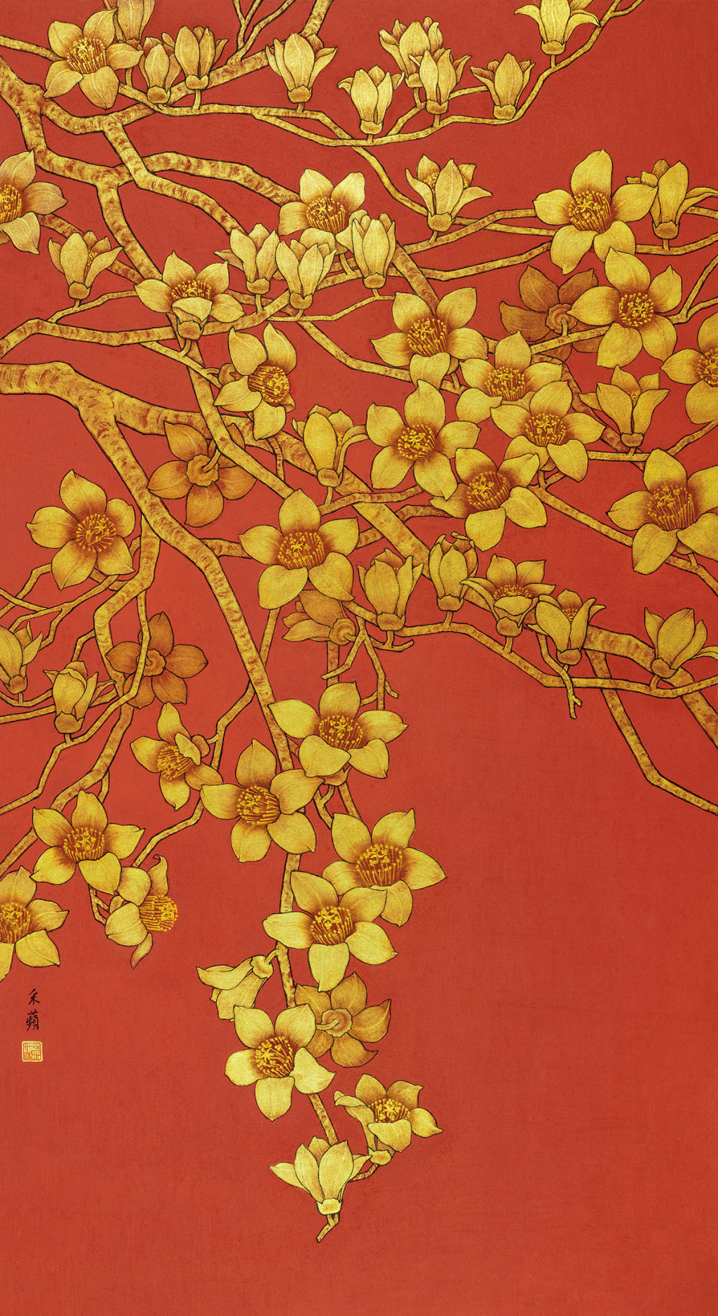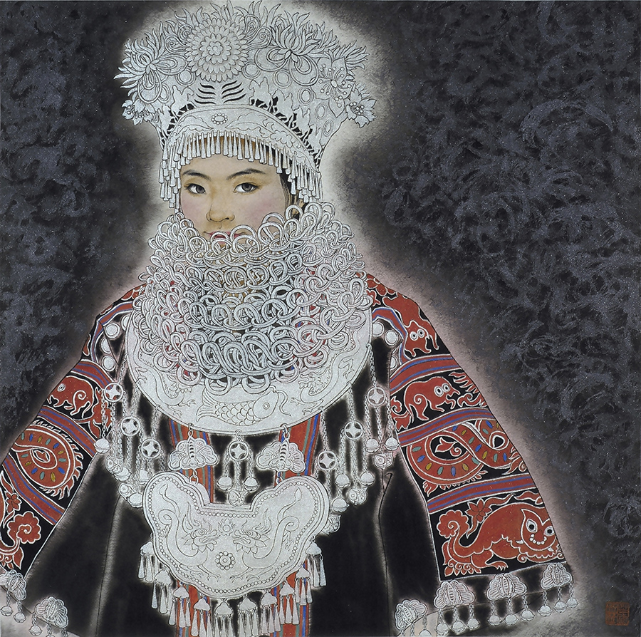 中国重彩画古称“丹青”,唐代称“重彩”,近代称“工笔重彩”,今天所称的“中国重彩画”是恢复它原有的传统称谓。中国重彩画本是中华民族绘画的原发形态,在唐代它是中国画坛主流,而且是无比的灿烂辉煌。宋元以来,文人水墨画成为画坛主流,中国重彩画虽在画坛仍占有一席之地,但已成为边缘绘画。虽有很画家依然坚守,其弱势已为定局。究其原因,应当归于历史:南宋只有半壁江山;元朝是蒙古族政权;明代不断地受异族侵犯;清代提倡复古的“四王”,继盛唐以来,在动荡的历史长河中,人们流离失所、苦不堪言,工笔重彩难以走进大众,所以有人说:“只有盛世太平之年,才有工笔重彩画。”中国重彩画的回归与重现绝非偶然。